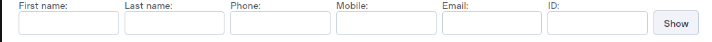 Input elements with type="text" attributes represent input fields for searching data. Each field has its own id, name and value.Form submit button